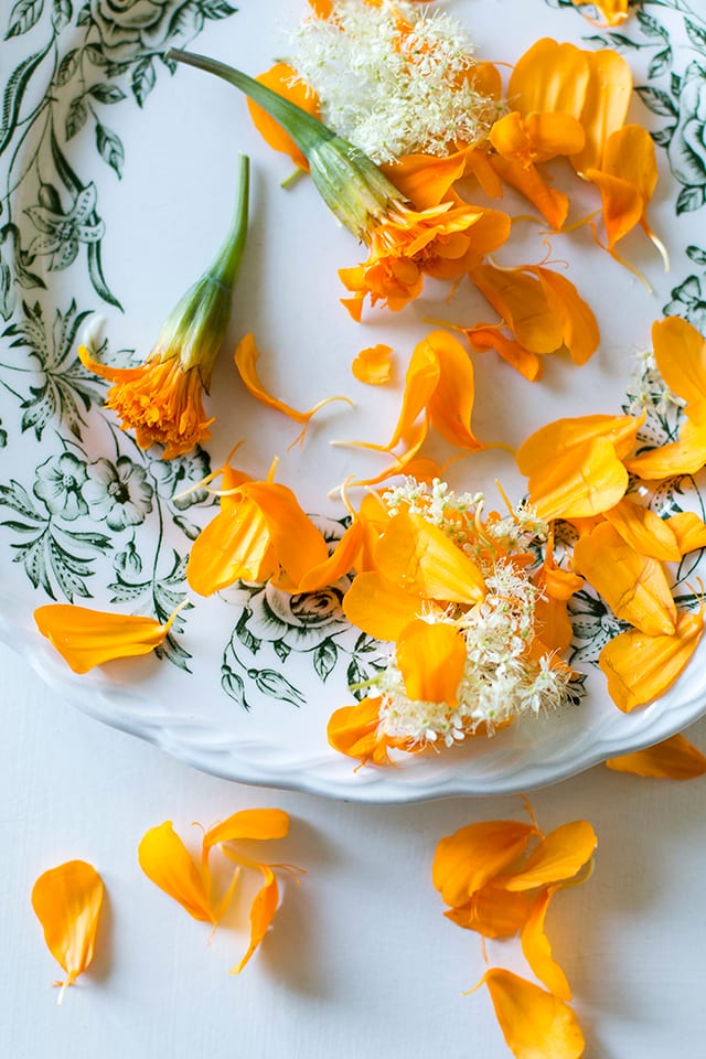 Myös ruoka-annoksen tekeminen oli esteettisesti antoisaa. En ole mikään samettiruusujen fani, mutta nuo kirkkaan keltaoranssit terälehdet ovat upean värisiä ja pistävästä tuoksusta huolimatta maistuvat hyvältä.