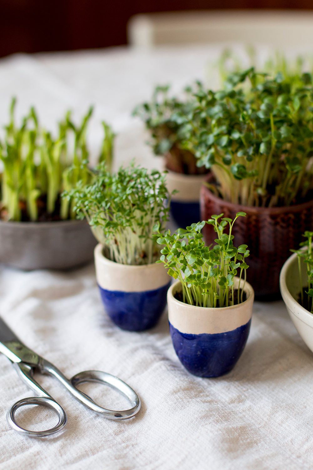 Valon lisääntyessä on ihan pakko ruveta kylvöhommiin. Palstaistutuksia en ole ihan vielä ehtinyt suunnitella, mutta sen sijaan kylvin muutamia nopeakasvuisia ruokapöytään sopivia kasveja syötäväksi ja pöydän somistukseksi. Aika ihania pehkoja!