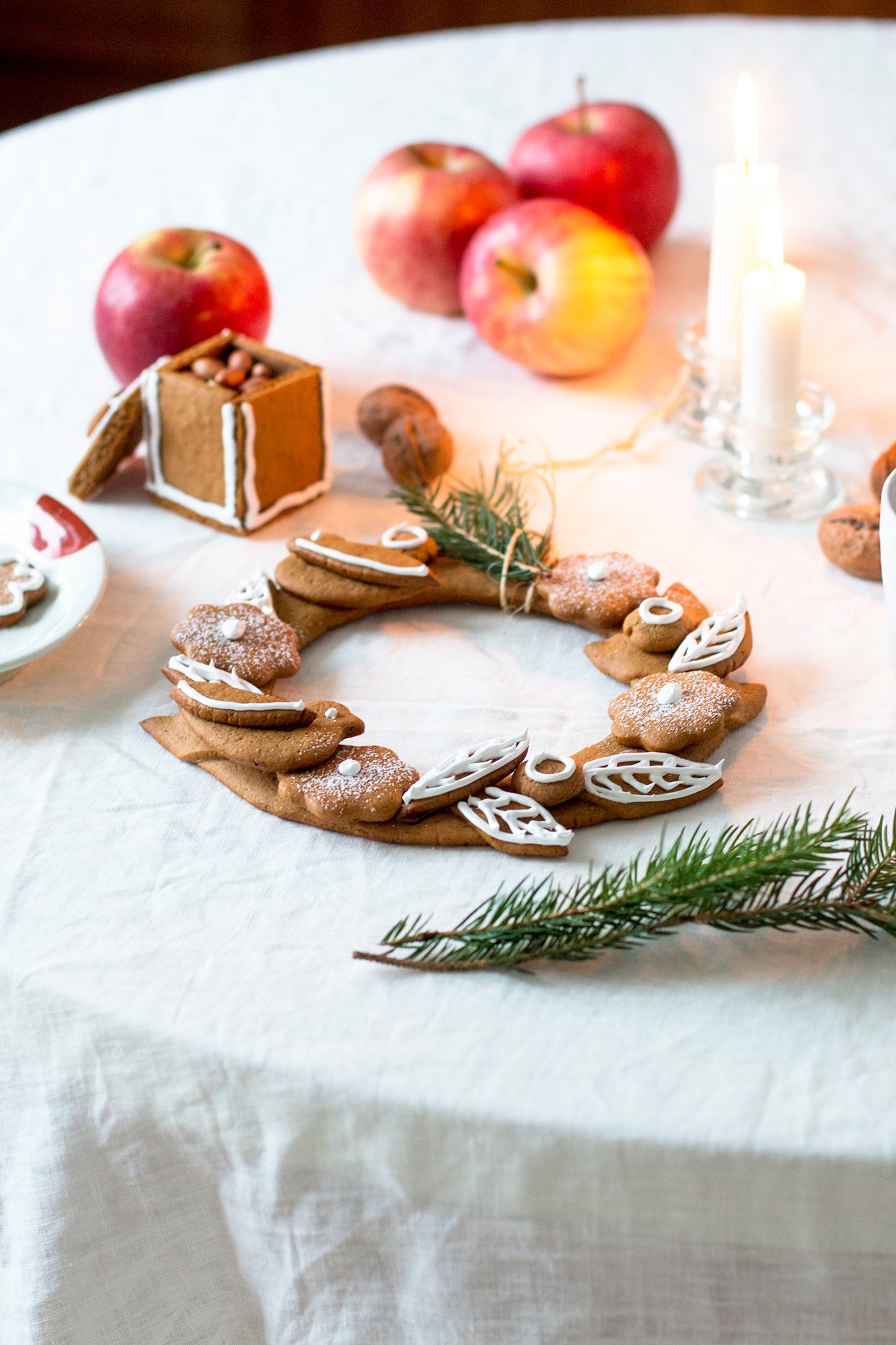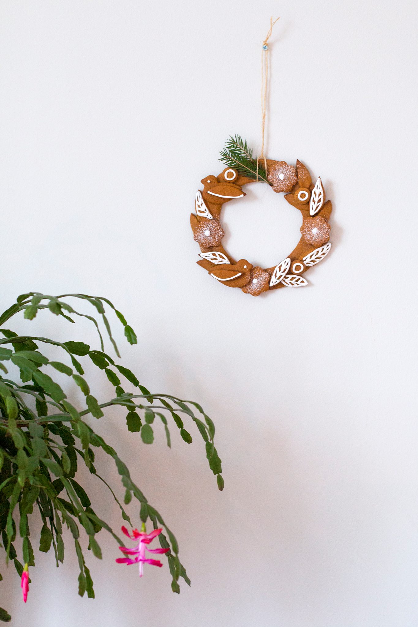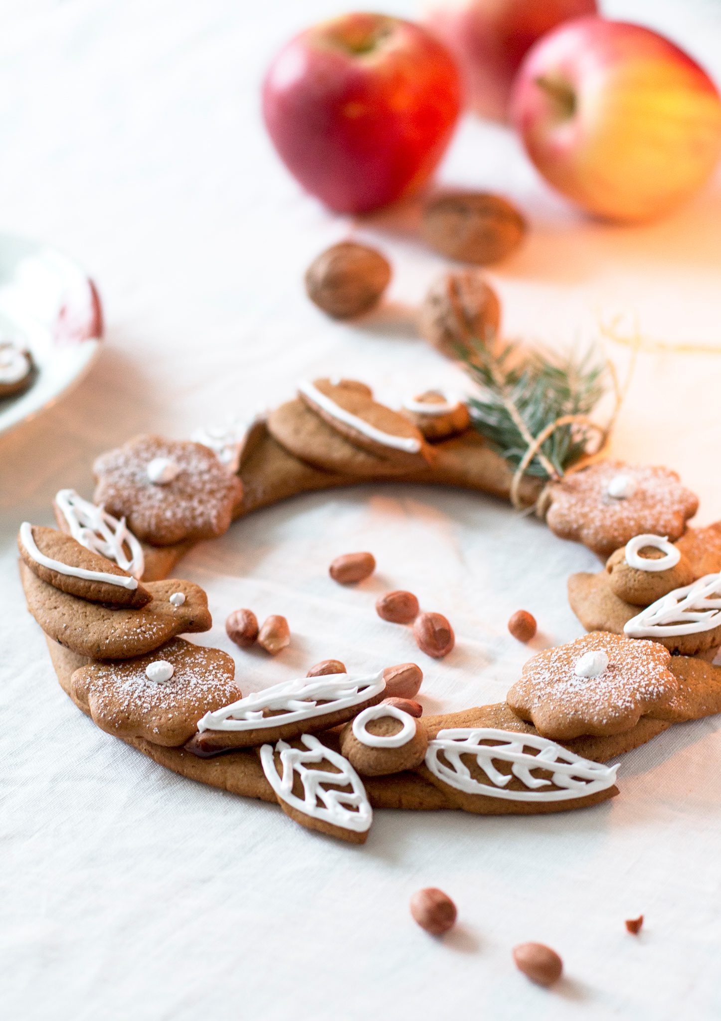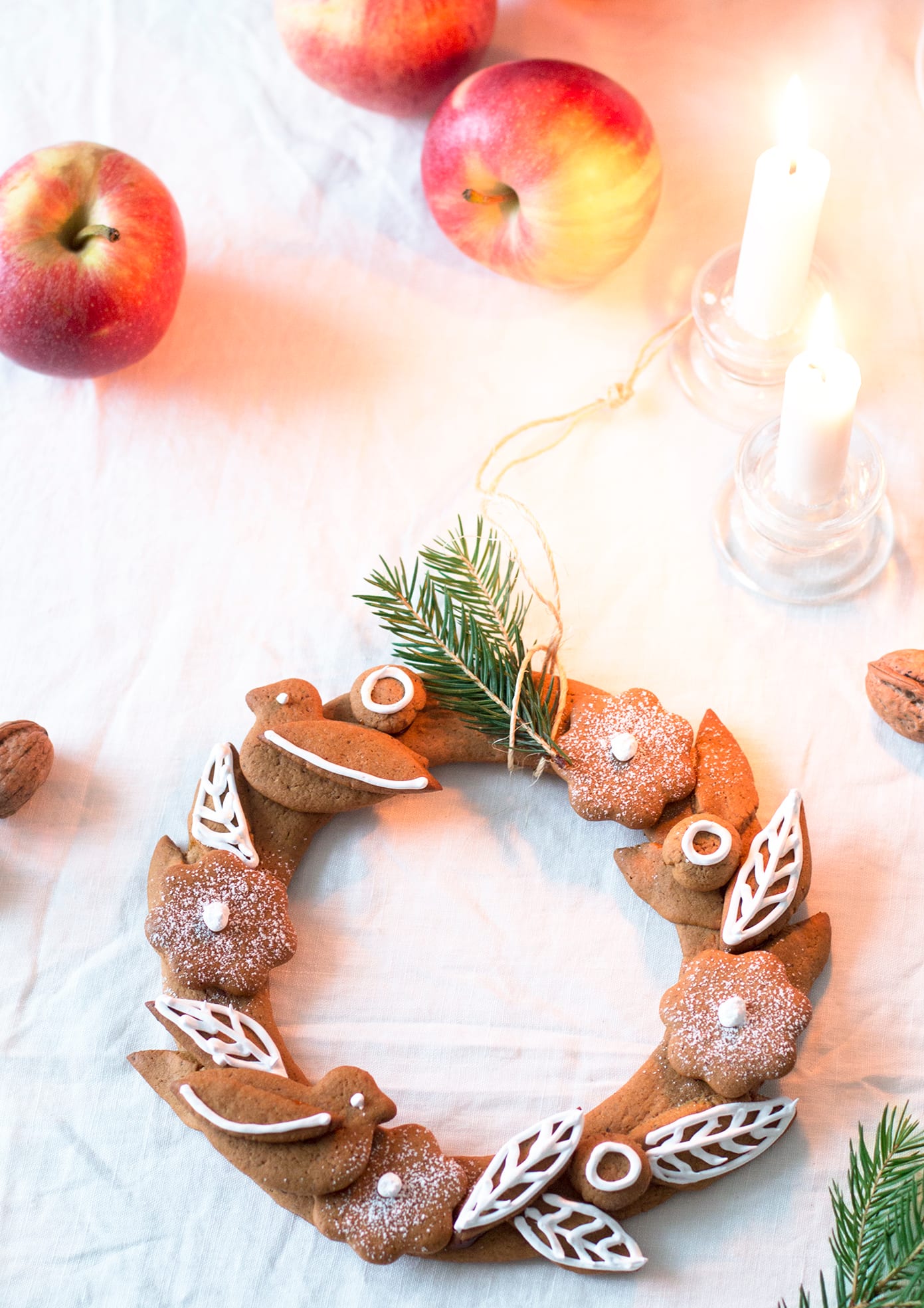 Kranssi syntyi vähän vahingossa, erään toisen idean sivutuotteena, mutta siitä tulikin aika ihana. Piparkakun väri itsessään on kaunis, joten minusta kannattaa jättää koristelut pelkistetyiksi.