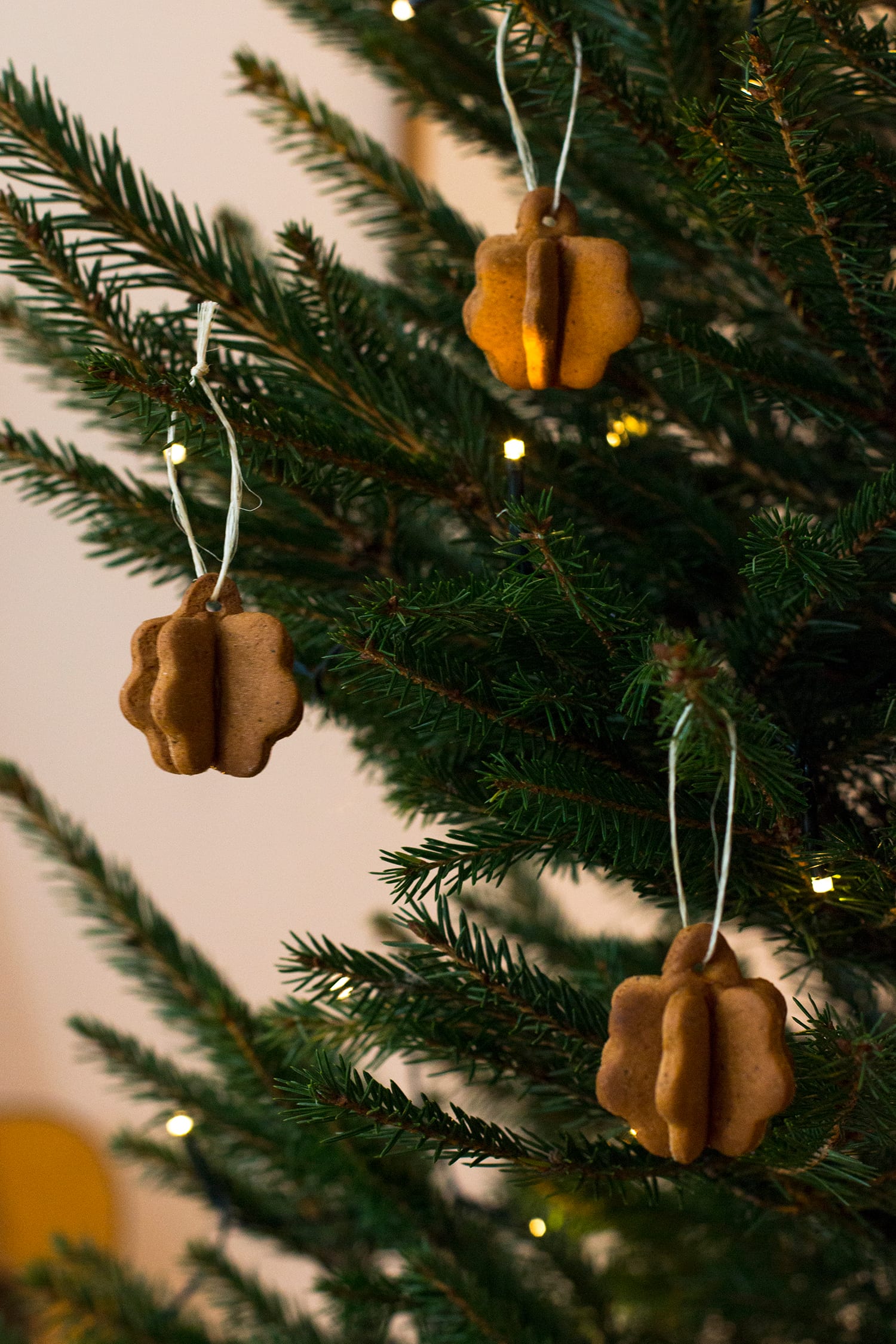 - Kiinnitä paistamisen jälkeen puolikkaat kokonaiseen pipariin sulatetulla sokerilla ja lisää ripustusnauha.