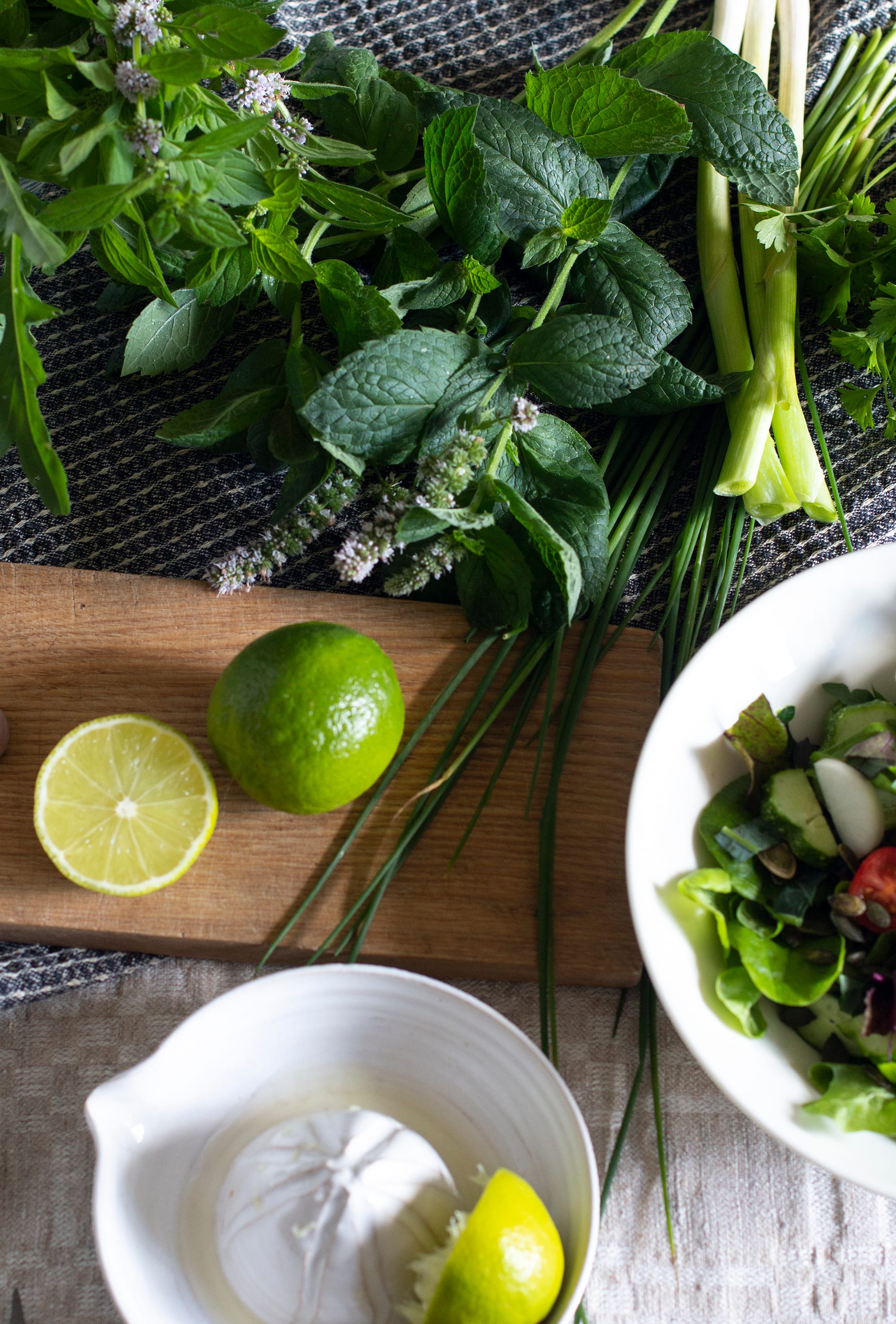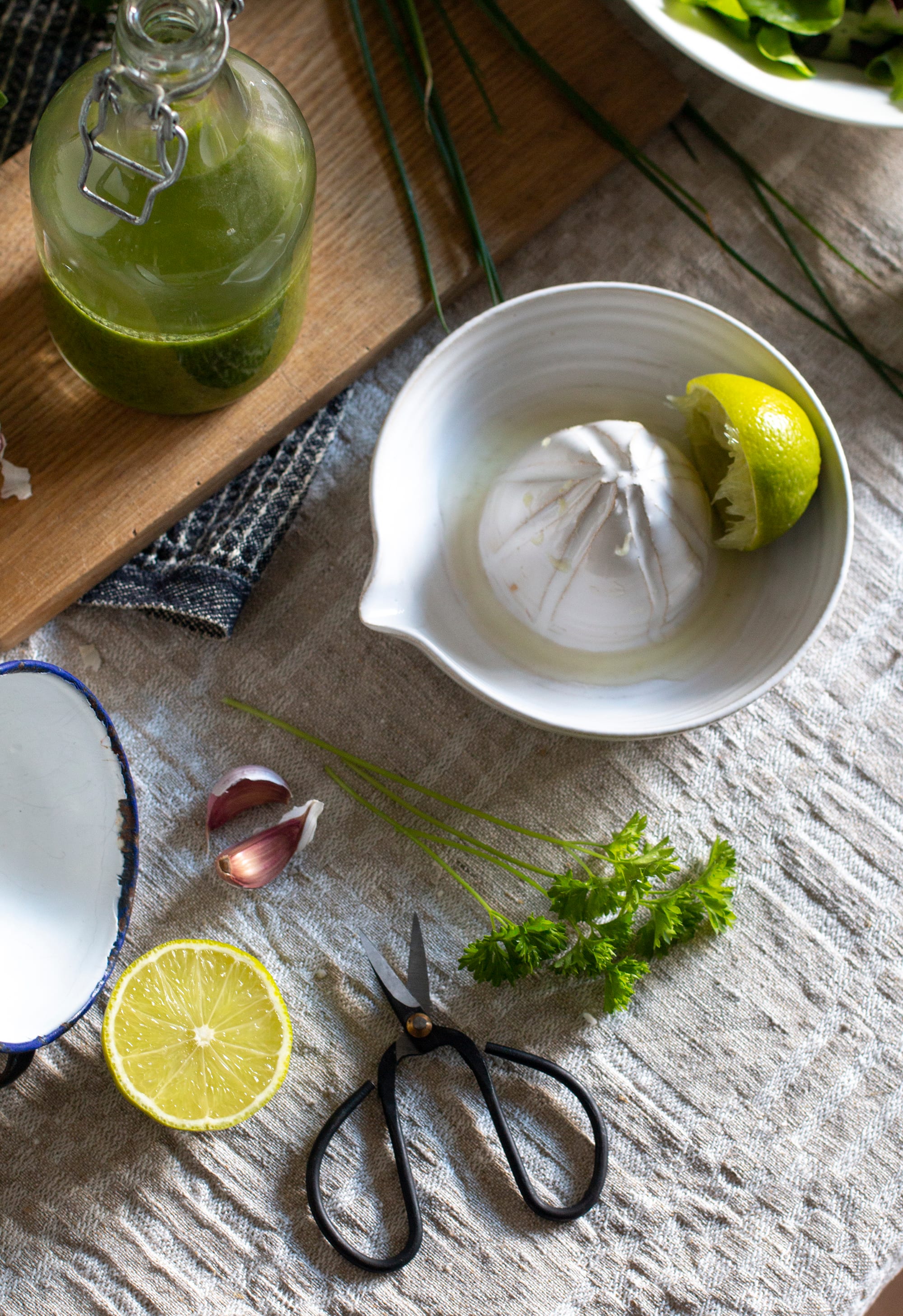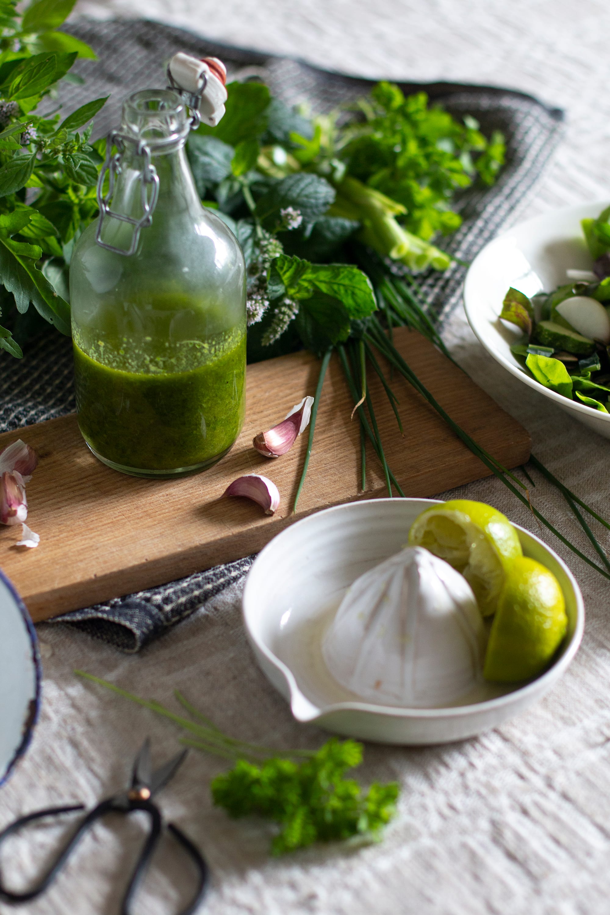 - 3-4 dl yrttejä ja varsia, esim. persilja, rucola, ruohosipuli, mäkimeirami, basilika, minttu (vain lehdet)