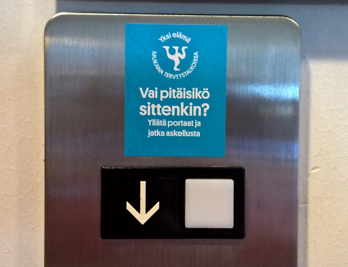 Ruuan lisäksi ohjaamista voidaan tehdä vaikkapa liikkumiseen kannustavilla viesteillä. Tutkimuksissa tehokkaimmiksi on havaittu hissien oviin ja portaikkojen alkupäähän liimatut viestit, joissa kehotetaan käyttämään portaita terveyden edistämiseksi.