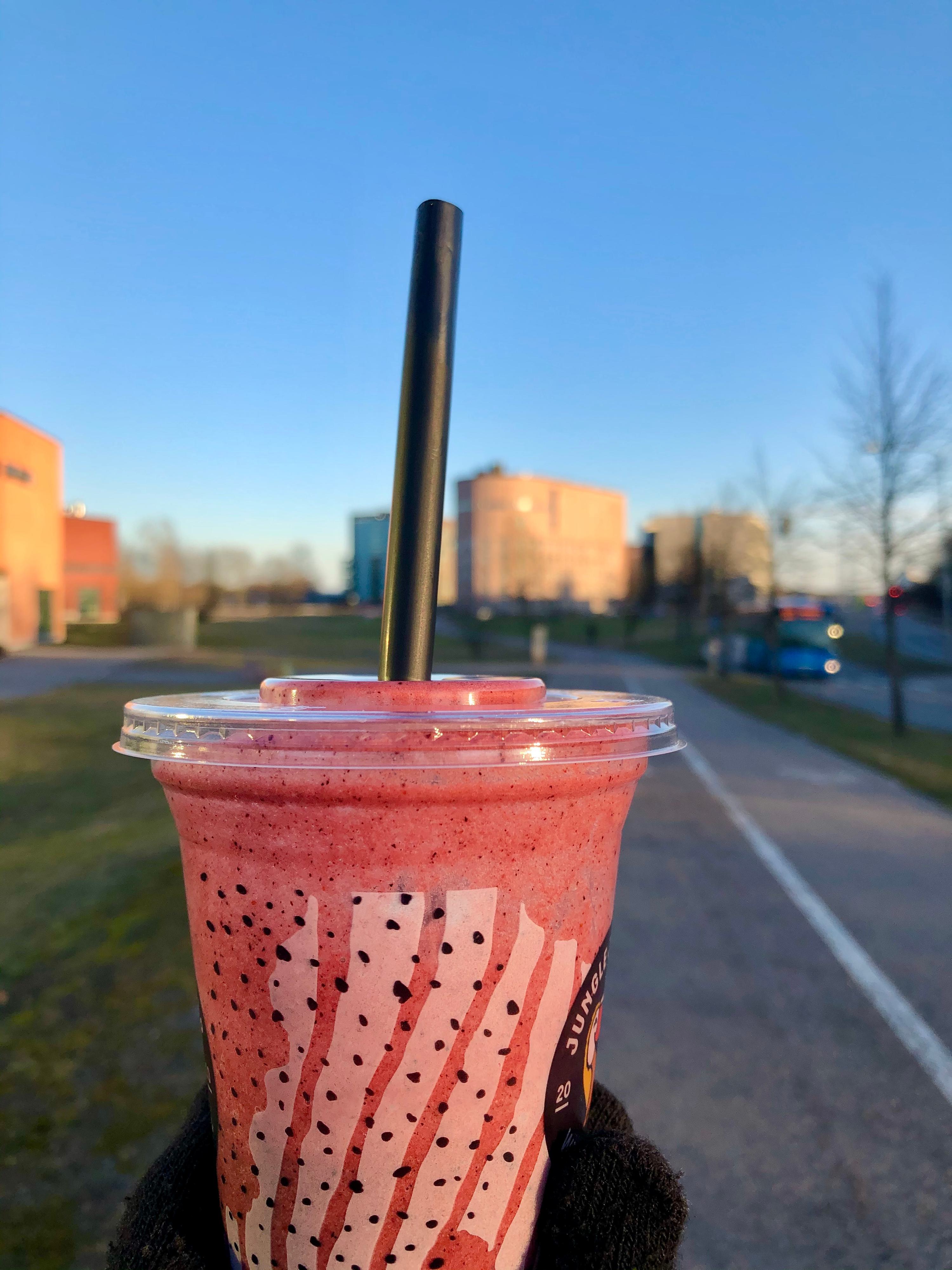 Ja ennen kuin ajattelette, että siinä taas yksi tuomitseva ravitsemusasiantuntija. Kyllä, join itsekin toissapäivänä smoothien. En ehkä ajatellut tekeväni suurta terveystekoa, mutta tarvitsin treenin jälkeen jonkin hiilihydraatti- ja proteiinipitoisen juoman, joka maistuu hyvältä. Ja koska smoothiebaari osui kohdalle, päätin kokeilla. Ja oli muuten aivan järisyttävän hyvää kookosmaitoineen kaikkineen. Oli hintakin sen verran järisyttävä, eli jatkossakin rahat menevät useammin syötävään lounaaseen kuin smoothieen. Vaihtelu varsinkin kylmän smoothien muodossa virkistää.